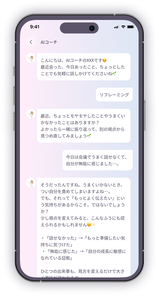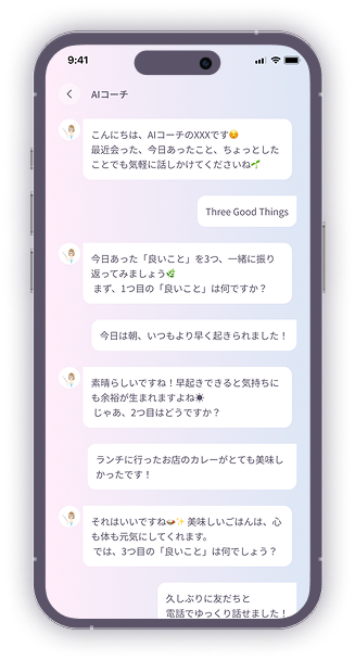 ポジティブ認知行動療法をもとに、AIチャットがアドバイス。
